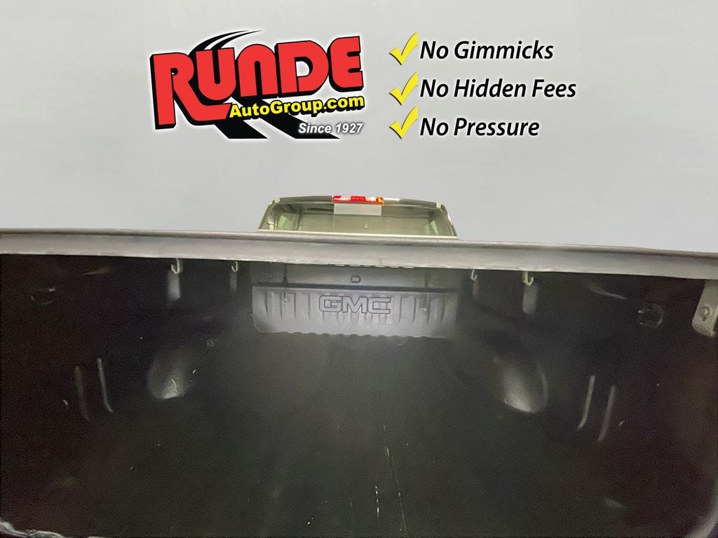 Enhanced Driver Alert Package: Lane Keep Assist; Forward Collision Alert; Low Speed Forward Automatic Braking; Ultrasonic Front and Rear Park Assist; IntelliBeam Automatic High Beam On/off Headlight. SLT Crew Cab Premium Plus Package. Preferred Equipment Group 4SA: LED Cargo Box Lighting; EZ Lift and Lower Tailgate; Chrome Door Handles; Rear 60/40 Folding Bench Seat (folds Up); Remote Vehicle Starter System; 5.3L EcoTec3 V8 Engine; Electric Rear Window Defogger; Theft Deterrent System (unauthorized Entry); Auxiliary External Transmission Oil Cooler; 4.2" Diagonal Color Display Driver Info Center; Trailering Equipment; 110-Volt AC Power Outlet; Thin Profile LED Fog Lamps; 150 Amp Alternator; Steering Wheel Audio Controls; Universal Home Remote; Color-Keyed Carpeting; Power Windows with Driver Express Up and Down; OnStar and GMC Connected Services Capable; Remote Keyless Entry; P265/70R17 AS BW Spare Tire; Single Slot CD/MP3 Player; 2-Speed Active Electronic Autotrac Transfer Case; 1st and 2nd Row Color-Keyed Carpeted Floor Mats; Deep-Tinted Glass; Dual-Zone Automatic Climate Control; Power Folding and Adjustable Heated Outside Mirrors; Chrome Mirror Caps; Leather Wrapped Steering Wheel with Cruise Controls; Manual Tilt/telescoping Steering Column; Driver and Front Passenger Illuminated Vanity Mirrors; Front Frame-Mounted Black Recovery Hooks; GMC 4G LTE; LED Tailamps with Signature; Auto-Dimming Inside Rearview Mirror; Power Adjustable Pedals; Rear Wheelhouse Liners; Heavy-Duty Rear Locking Differential; Chrome Bodyside Moldings. 6" Rectangular Chromed Tubular Assist Steps. Heated and Ventilated Front Bucket Seats. Front Full Feature Power Reclining Bucket Seats. Bose Speaker System. AM/FM/GMC Infotainment and Navigation Radio. Spray-On Pickup Box Bed Liner with GMC Logo. Integrated Trailer Brake Controller. **Equipment listed is based on original vehicle build and subject to change. Please confirm the accuracy of the included equipment by calling the dealer prior to purchase.**