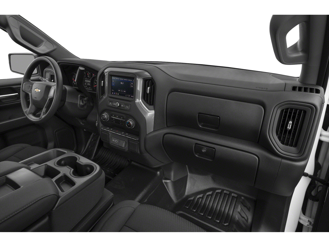 Work Truck Package: Skid Plates; Heavy-Duty Air Filter. Preferred Equipment Group 1WT: HD Rear Vision Camera; Bluetooth® For Phone; Black (semi-Gloss) Front Bumper; 17" X 8" Ultra Silver Painted Steel Wheels; Black (semi-Gloss) Rear Bumper; 3.5" Monochromatic Display Driver Info Center; Rubberized-Vinyl Floor Covering; Standard Tailgate; Tire Pressure Monitoring System; 40/20/40 Front Split Bench Seat; Teen Driver; OnStar Services Capable; Power Front Windows with Passenger Express Down; Remote Keyless Entry; 4-Way Manual Driver Seat Adjuster; Inside Rearview Mirror with Tilt; Solar Absorbing Tinted Glass; SiriusXM Delete; Electronic Cruise Control; Chevy Safety Assist; Manual Tailgate Function with No EZ Lift; Manual Tilt Wheel Steering Column; Power Front Windows with Driver Express Up/down; Front Frame-Mounted Black Recovery Hooks; TurboMax Engine; Locking Tailgate; Heated Power-Adjustable Outside Mirrors. Auto-Locking Rear Differential. 265/70R17 AT BW Tires. Front Chrome Bumper. Skid Plates. **Equipment list
